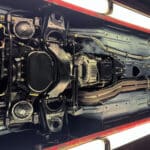 The Mercedes Benz 280 SL featured a manual 4-speed gearbox as standard and an optional 4-speed automatic gearbox. From May 1966 the Pagoda also had the option of a ZF 5-speed manual gearbox (these were extremely rare). The 4-speed automatic gearbox has the same cast iron casing as the manual version, but featured a fluid flywheel rather than a torque converter and is fitted with two sets of planetary gears, three clutches and three brake bands, the clutches and brake bands being contained within the clutch bell housing. Although made of alloy, the clutch bell housing is a different shape from the one fitted to the manual gearboxes. When the shift lever is placed in drive ‘2’ or the kick down facility is used, bottom gear is automatically selected but the car otherwise pulls away from rest in the second ratio. The automatic gearbox weighs 13.6 kg more than the manual unit.