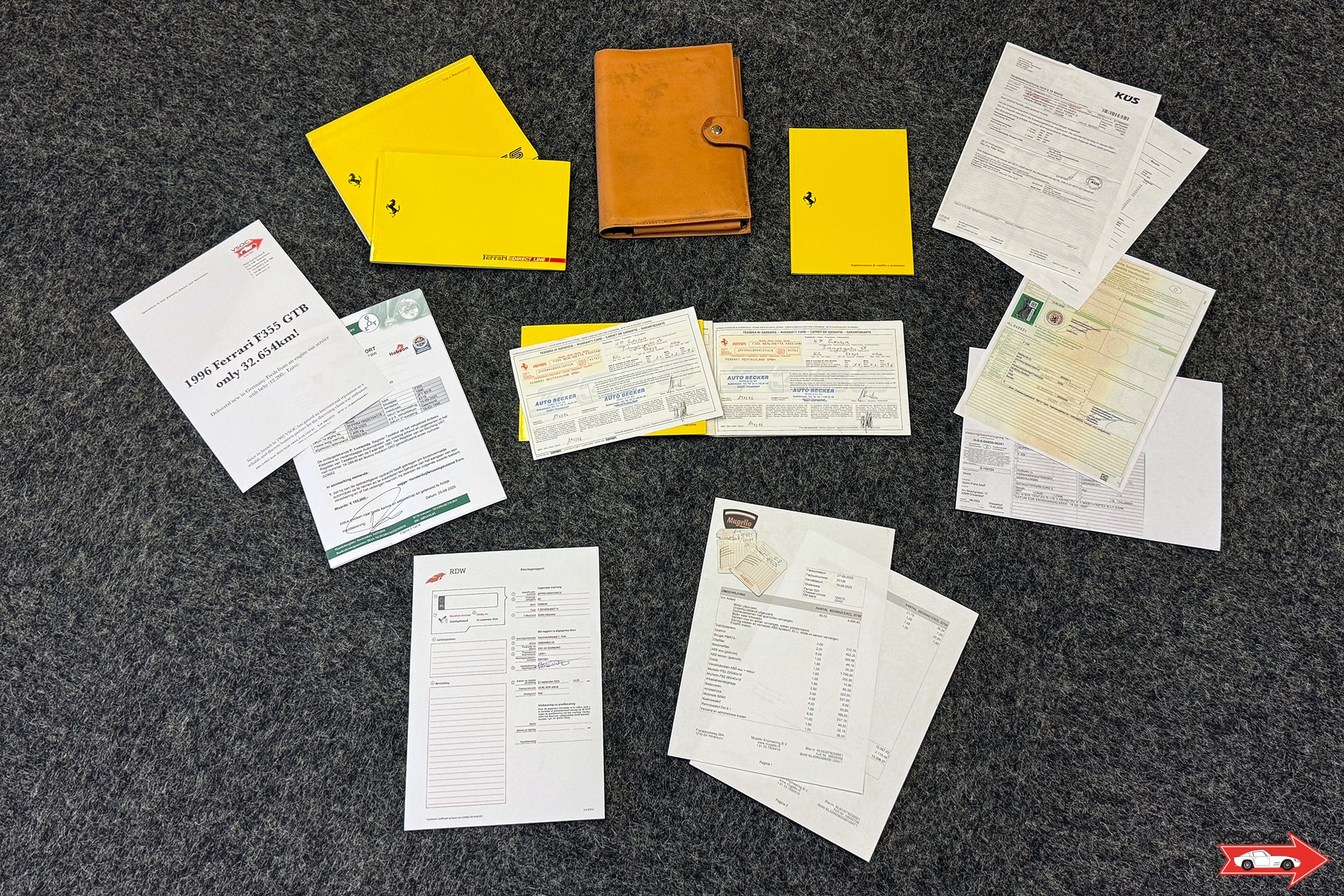 Now available: Outstanding Ferrari F355 GTB from 1996 with only 32.750km! Original paint and in great condition. Rosso Corsa with pelle Nera.