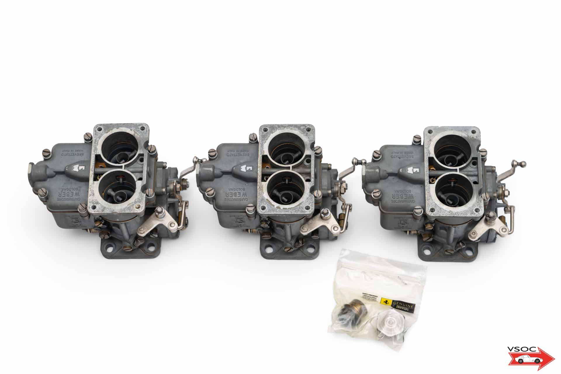 An original set of Weber 36 DCS carburettors, as fitted to the iconic Ferrari 250.
